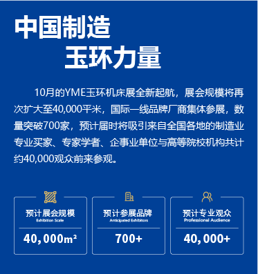 YME中國(玉環)國際機床展是華墨集團旗下的華機械系列展之一,是浙東南地區極具行業影響力的區域性機床專業展會,臺州市十大品牌展會之一,也是玉環市唯一寫入政府報告的展會,每年舉辦一屆,目前已經舉辦到了第17屆。