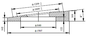 4,用同樣厚度鋼板替下密封圈,車壓環(huán)、蝶板各錐面至圖紙尺寸;